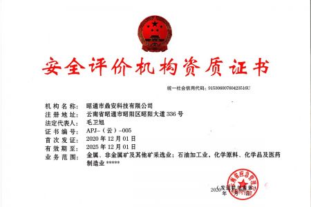 2003年11月10日,昭通市鼎安科技有限公司成立,初始主要從事第三方安全工程技術(shù)服務(wù),經(jīng)多年運營,發(fā)展為多專業(yè)綜合科技平臺,為社會提供多種專業(yè)技術(shù)服務(wù)工作。 現(xiàn)公司注冊資金為1200萬元,公司法定代表人:毛衛(wèi)旭。公司主要業(yè)務(wù):安全評價、安全標準化評審、安全工程技術(shù)服務(wù);環(huán)境監(jiān)測、職業(yè)衛(wèi)生檢測、檢驗;法律訴訟及非訴訟服務(wù);司法鑒定、固定資產(chǎn)投資項目節(jié)能服務(wù);工程咨詢;工程測量測繪;安全教育培訓(xùn)等。是安全生產(chǎn)服務(wù)、安全教育培訓(xùn)機構(gòu),也是環(huán)境監(jiān)測和職業(yè)衛(wèi)生服務(wù)機構(gòu),同時也是綜合的檢測檢驗、綜合科技平臺服務(wù)機構(gòu)。多年來為公、檢、法、司、軍、警、海關(guān)、仲裁、安監(jiān)、工礦商貿(mào)企業(yè)、社會團體及個人提供多專業(yè)技術(shù)服務(wù)。